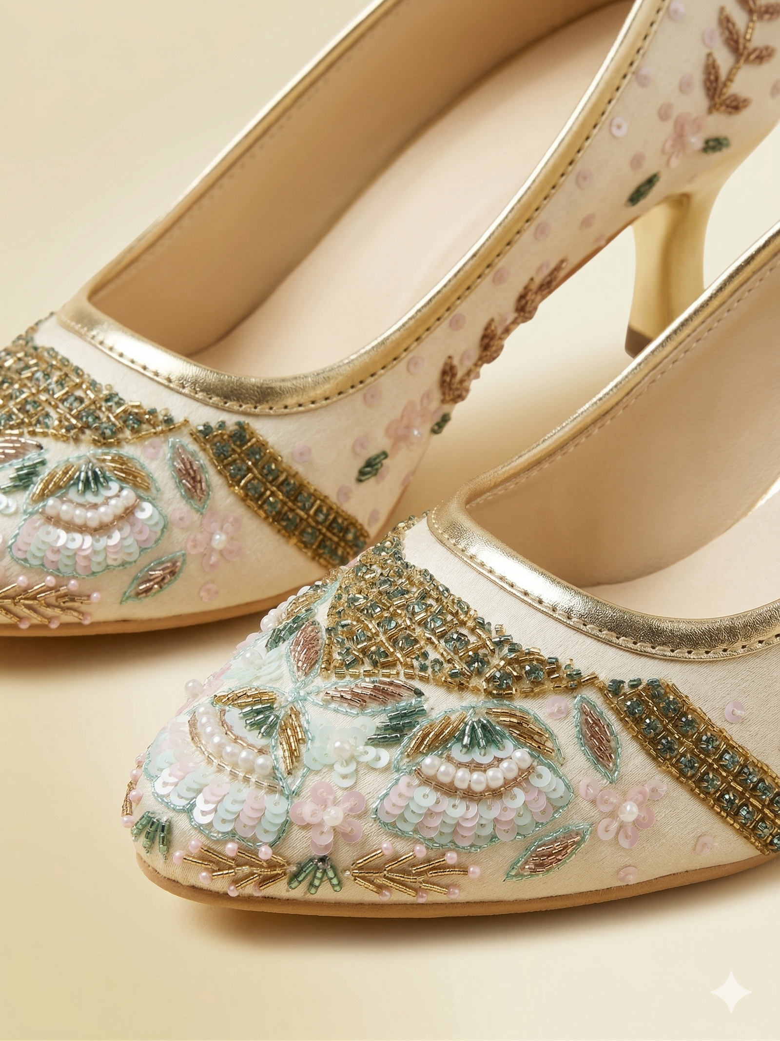 Step into the spotlight with our collection of premium part-wear heels, having forest green embroidery designed to blend high-fashion aesthetics with lasting comfort. Whether you are heading to a gala, a wedding, or an upscale dinner, these heels offer the perfect finishing touch to any sophisticated ensemble.