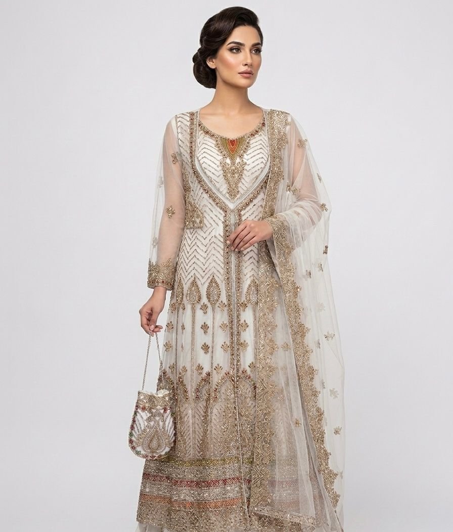 Elevate your festive wardrobe with this breathtaking three-piece ensemble. Crafted from premium, lightweight chiffon, this gown combines traditional craftsmanship with a modern silhouette, making it an ideal choice for weddings, formal parties, and festive celebration.