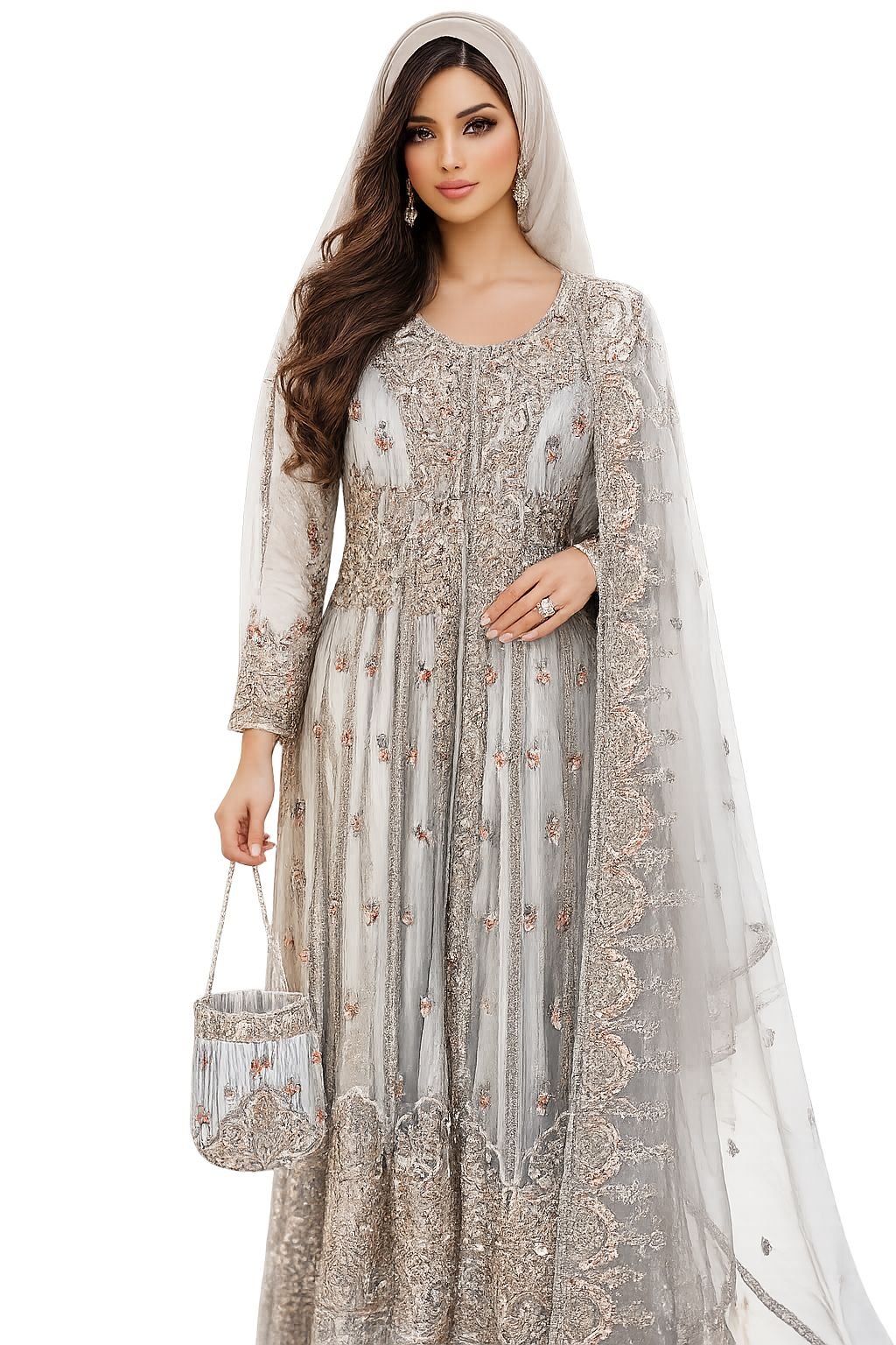 | Elevate your festive wardrobe with this breathtaking three-piece ensemble. Crafted from premium, lightweight chiffon, this gown combines traditional craftsmanship with a modern silhouette, making it an ideal choice for weddings, formal parties, and festive celebration. |
