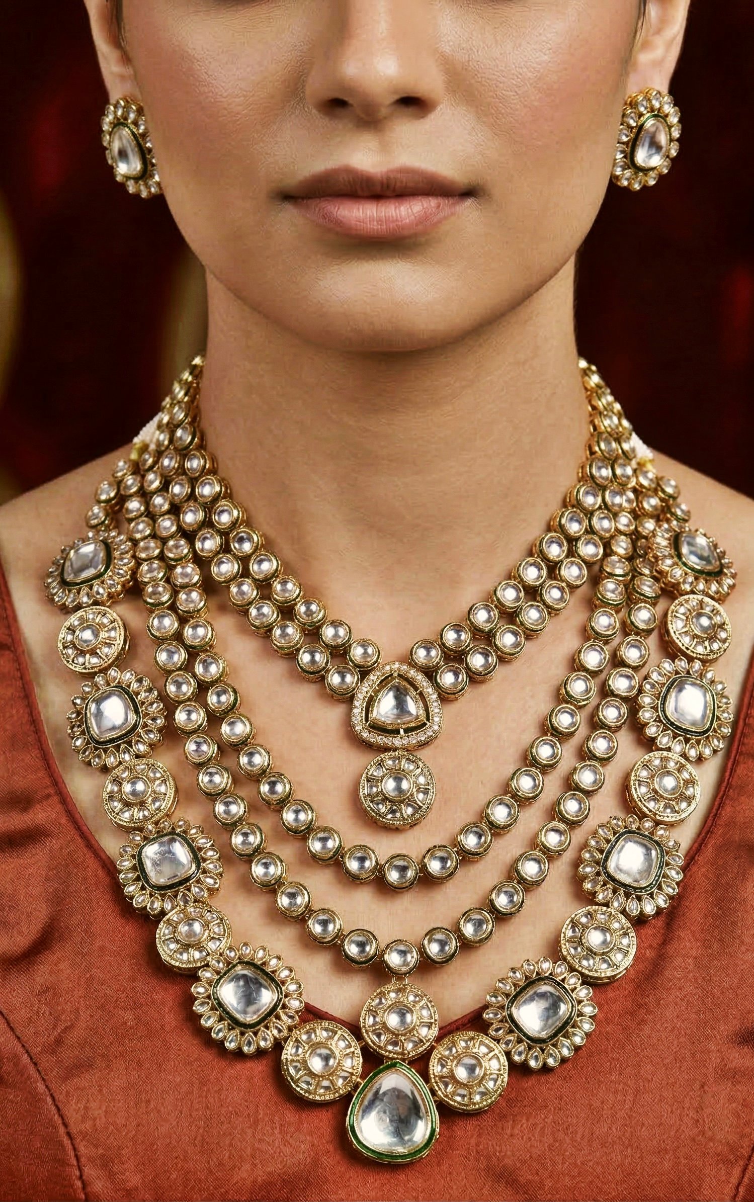 Elevate your look with our exquisite jewelry collection, where timeless heritage meets modern sophistication. Each piece is meticulously crafted to capture light and attention, serving as the crowning jewel of your ensemble. From regal traditional sets to minimalist contemporary accents, our jewelry is designed to celebrate every milestone.