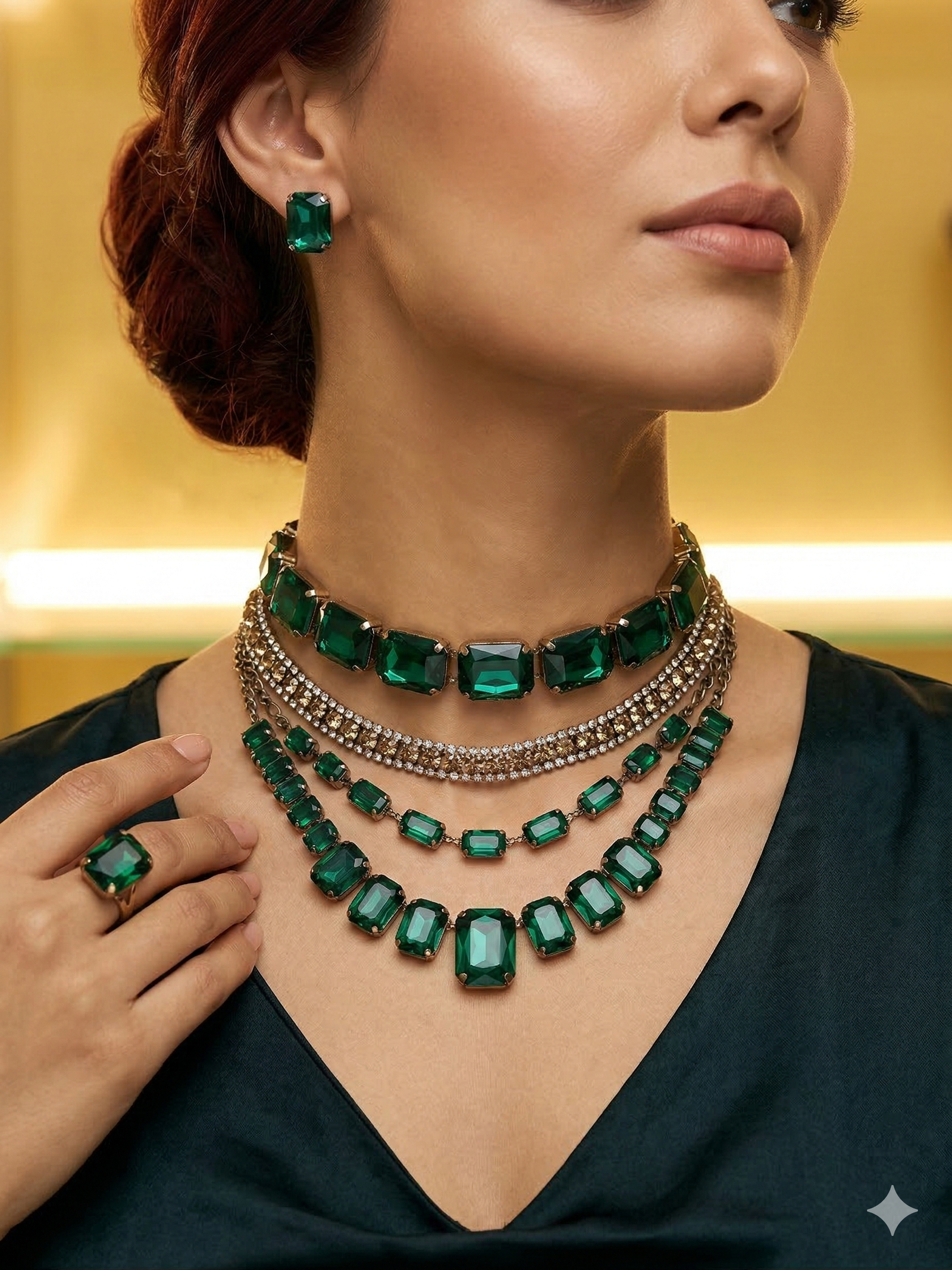 Elevate your look with our exquisite jewelry collection, where timeless heritage meets modern sophistication. Each piece is meticulously crafted to capture light and attention, serving as the crowning jewel of your ensemble. From regal traditional sets to minimalist contemporary accents, our jewelry is designed to celebrate every milestone.