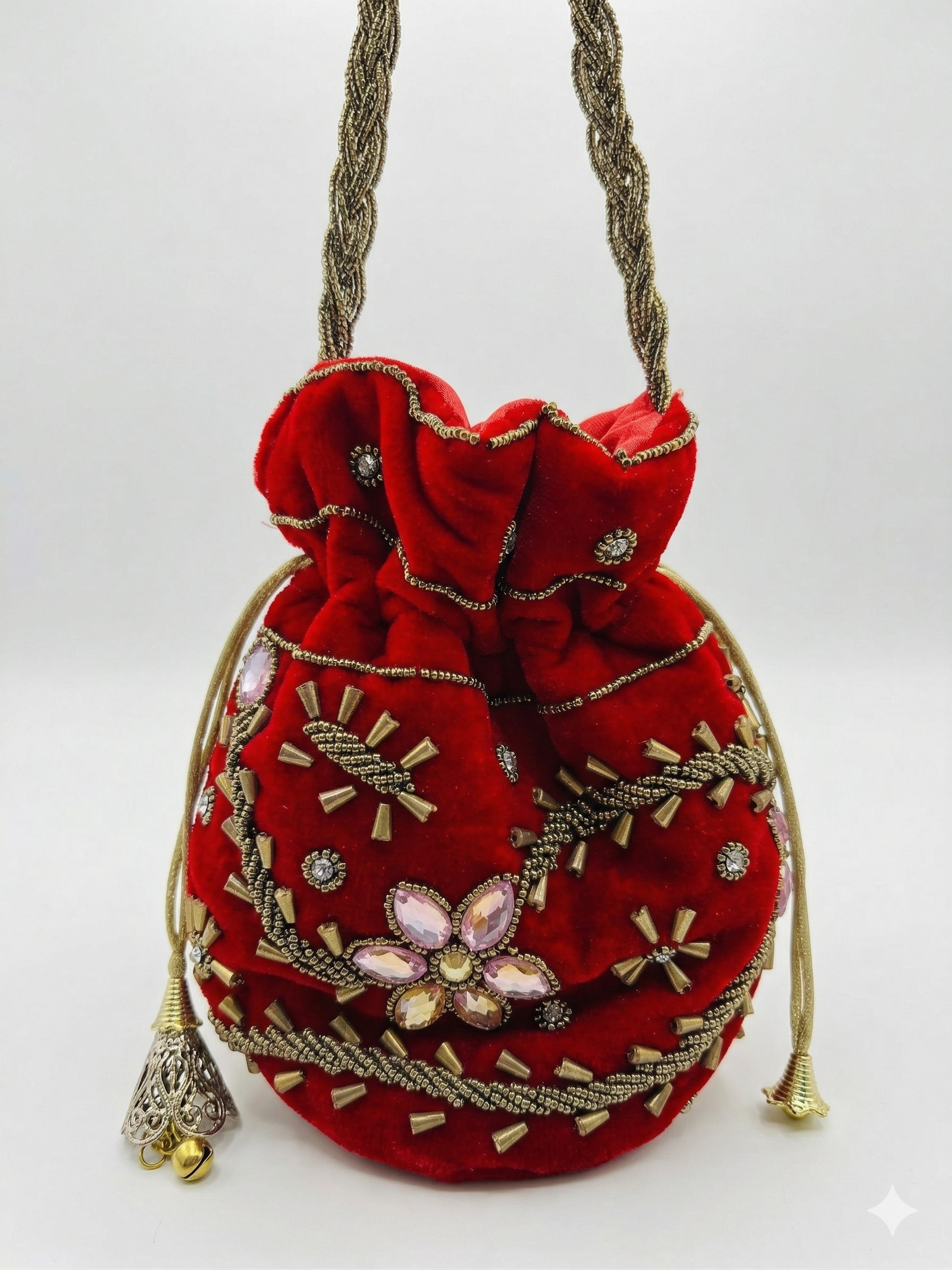 A fusion of heritage and high fashion, the Potli Bag is the quintessential accessory for traditional and festive ensembles. Defined by its iconic drawstring closure and ornate detailing, this handcrafted piece adds a regal charm to any outfit while keeping your essentials stylishly tucked away.