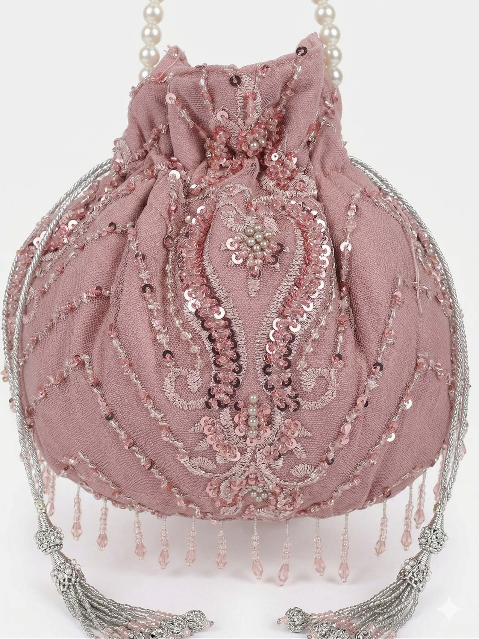 A fusion of heritage and high fashion, the Potli Bag is the quintessential accessory for traditional and festive ensembles. Defined by its iconic drawstring closure and ornate detailing, this handcrafted piece adds a regal charm to any outfit while keeping your essentials stylishly tucked away.