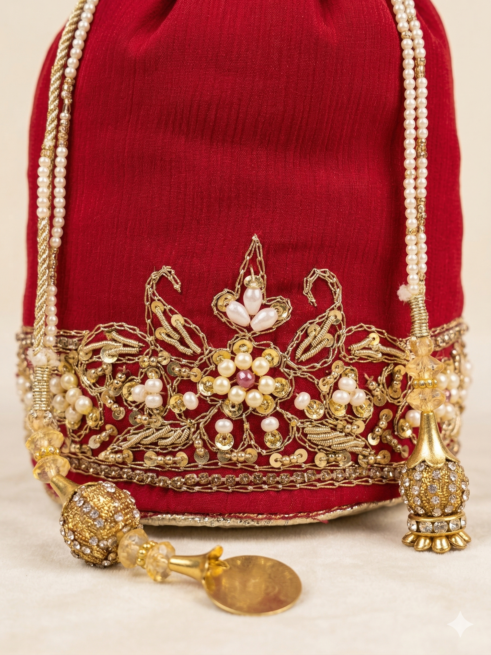 A fusion of heritage and high fashion, the Potli Bag is the quintessential accessory for traditional and festive ensembles. Defined by its iconic drawstring closure and ornate detailing, this handcrafted piece adds a regal charm to any outfit while keeping your essentials stylishly tucked away.